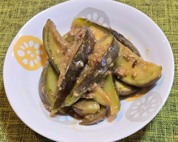 2. フライパンにナス炒め油を熱し、ナスを中火で炒め、火が通ったらいったん取り出す