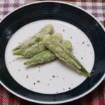 - 絞り袋に星形の口金を付けてサツマイモペーストを入れ、タルト台にしぼる