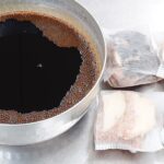 - 圧力鍋に6.と、2.のお茶パックを入れて、圧力がかかるまで煮る(圧力鍋がない場合は、鍋にふたをして、弱火で果皮が柔らかくなるまで煮る)