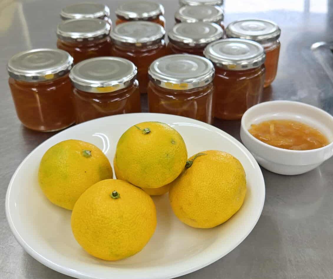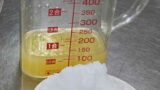 - 3回火にかけて湯を捨てたら、果汁と合わせて重さを量り、同じ重さの砂糖を加える(ゆでこぼす回数は0回から3回で、好みに合わせて選ぶ)