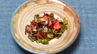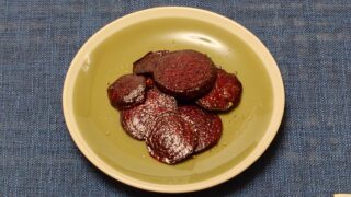 材料(2人分) ビーツ1個バター8g塩少々コショウ適宜 ビーツは皮をむいて、5mm厚の輪切りにする(切りにくければ、縦半分に切ってから、5mm厚の半月切りにしてもよい) フライパンにバターを熱し、ビーツを入れてふたをし、中弱火で3分焼いて、...